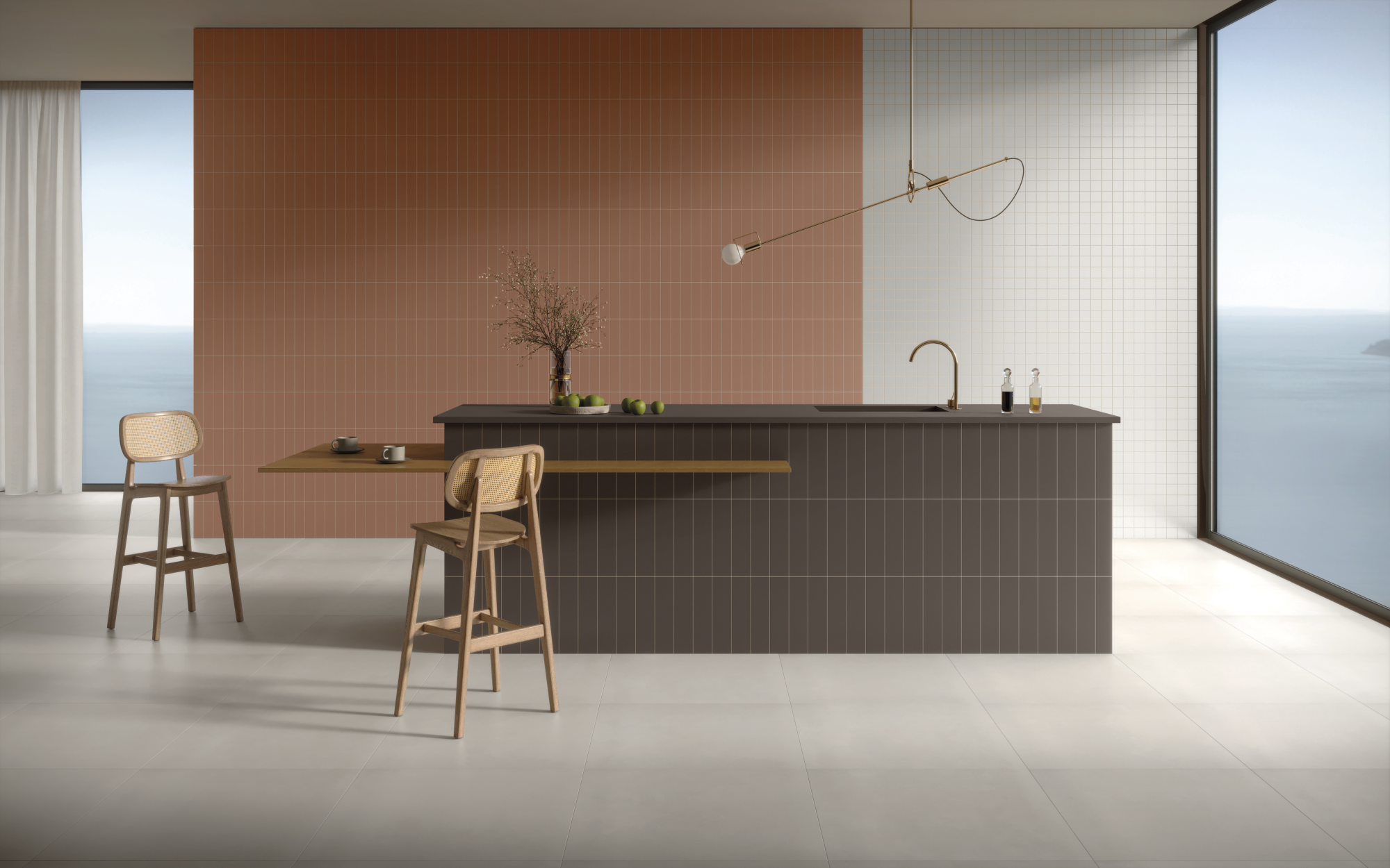To enhance the colors, the edges got straighter, minimizing shadows caused by the bold edge. The finishing is super matt, decreasing the reflection which distorts the colors. The joints are smaller, reducing the grouting area. A grout palette of colors to harmonize or contrast with the new system is part of this solution.